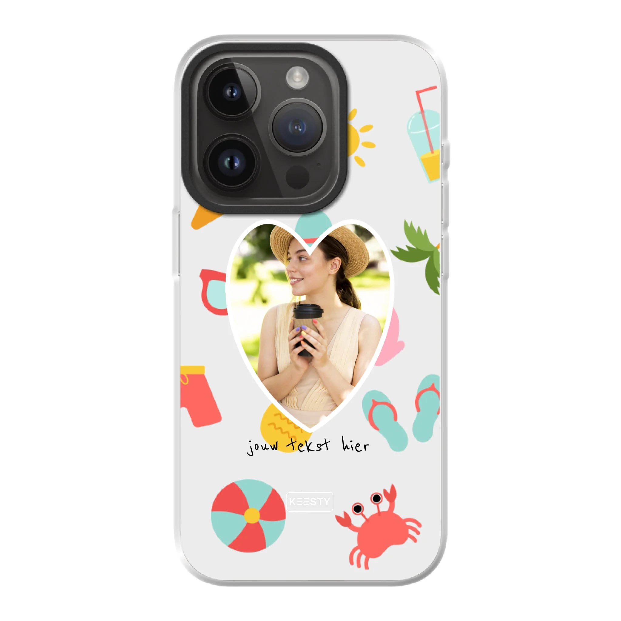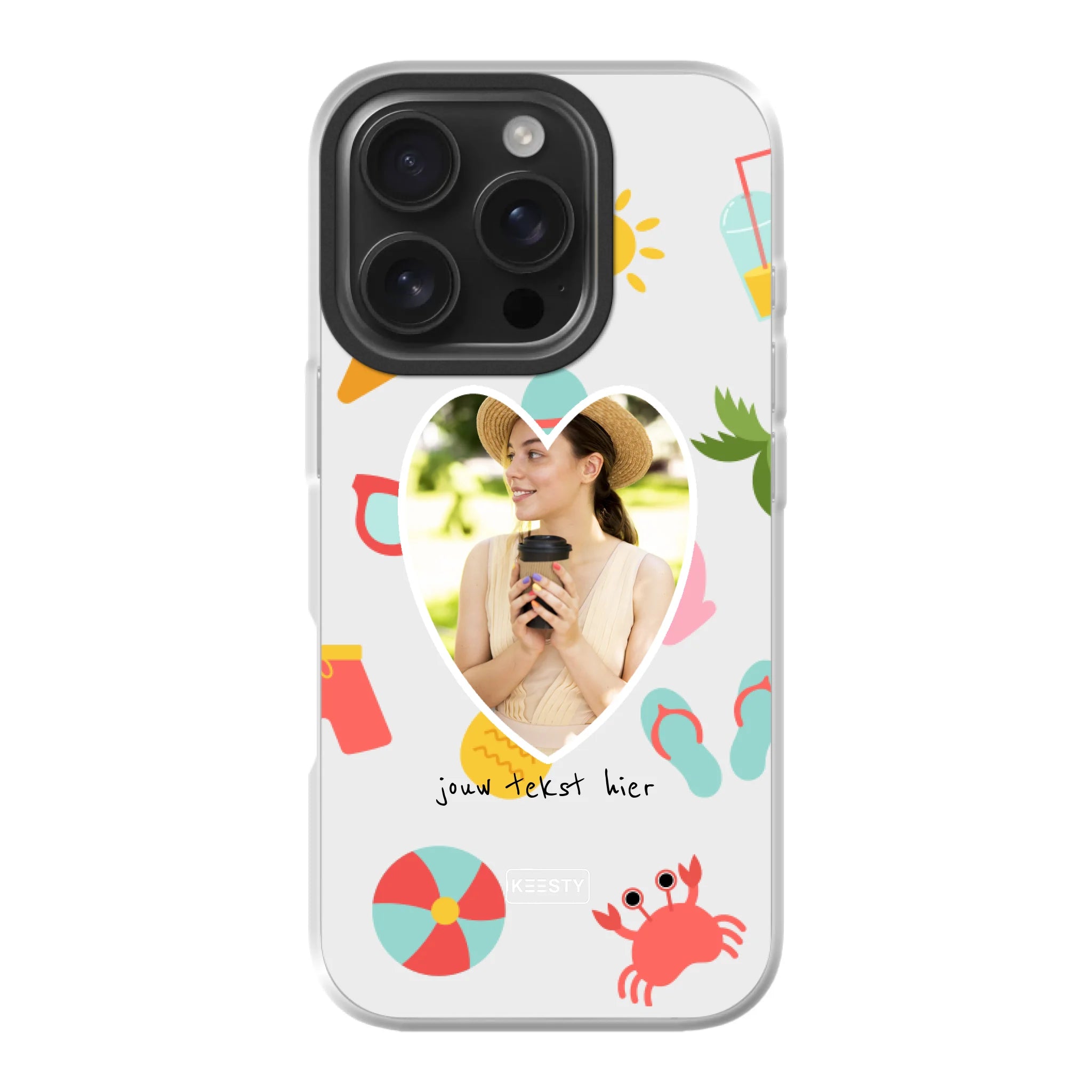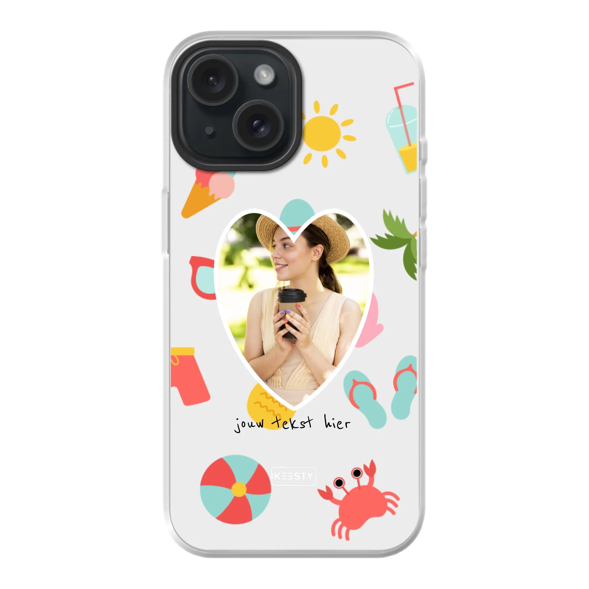 Bij Keesty maak je in een paar klikken jouw gepersonaliseerd telefoonhoesje. Kies je toestel, selecteer het type hoesje, en ontwerp direct online. Met de zachte, kalme tint van Foto met Summer Mix en jouw persoonlijke tekst maak je jouw hoesje echt uniek.