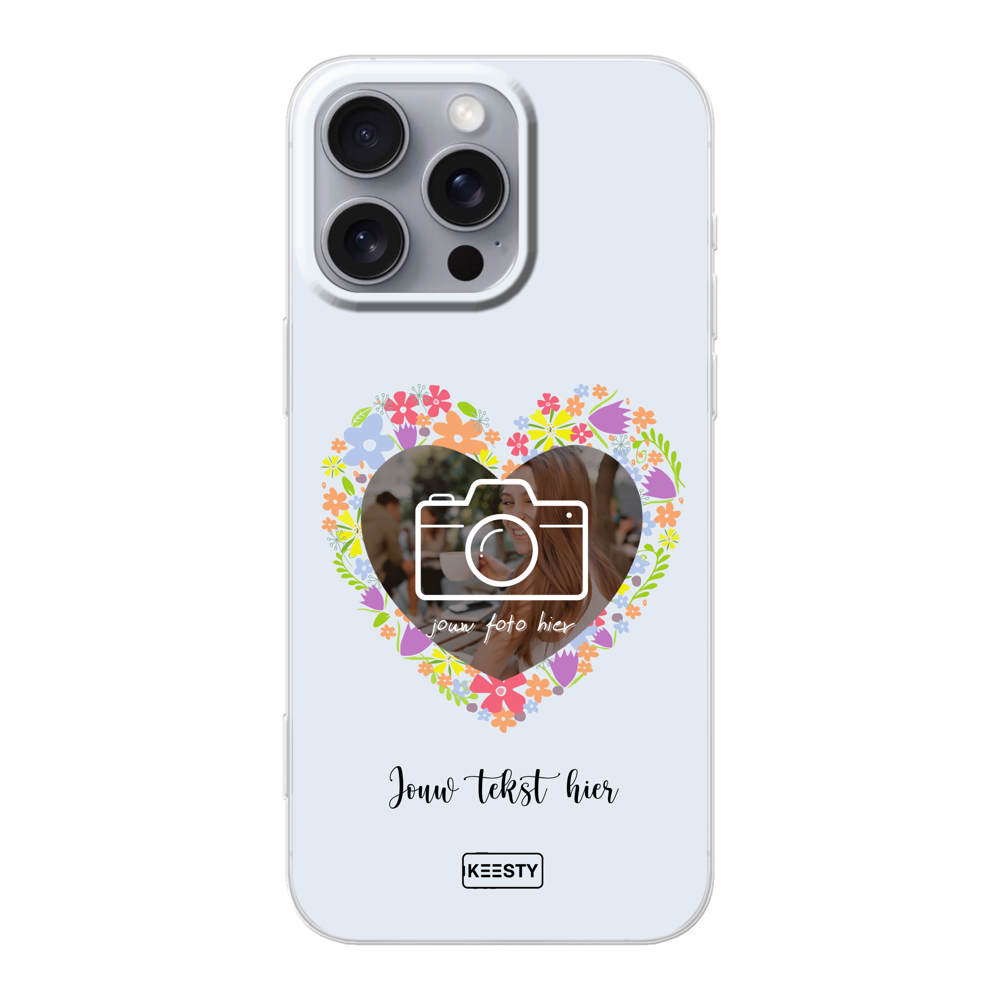 Telefoonhoesje Ontwerpen – Transparant Softcase met Bloemen Hart en Eigen Foto