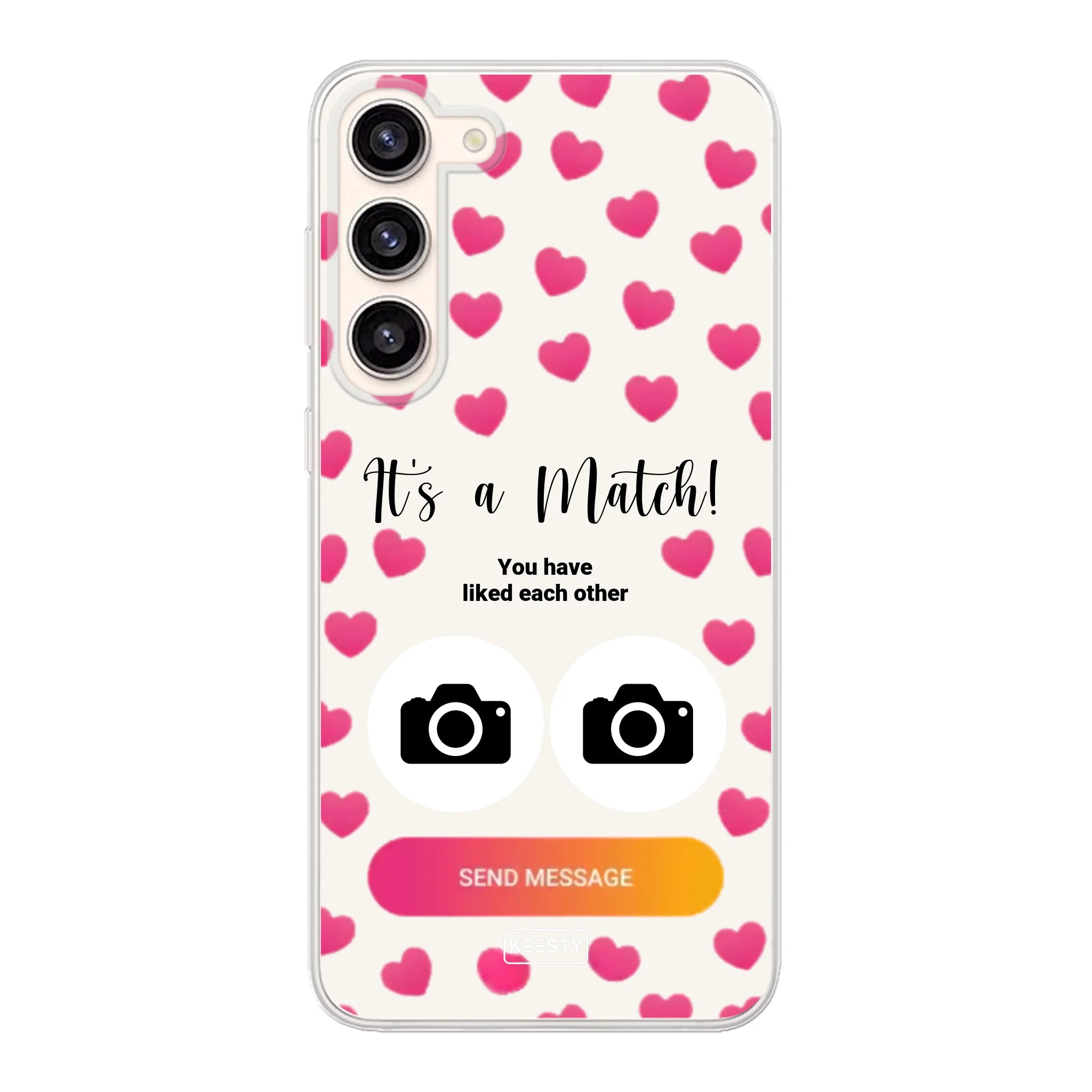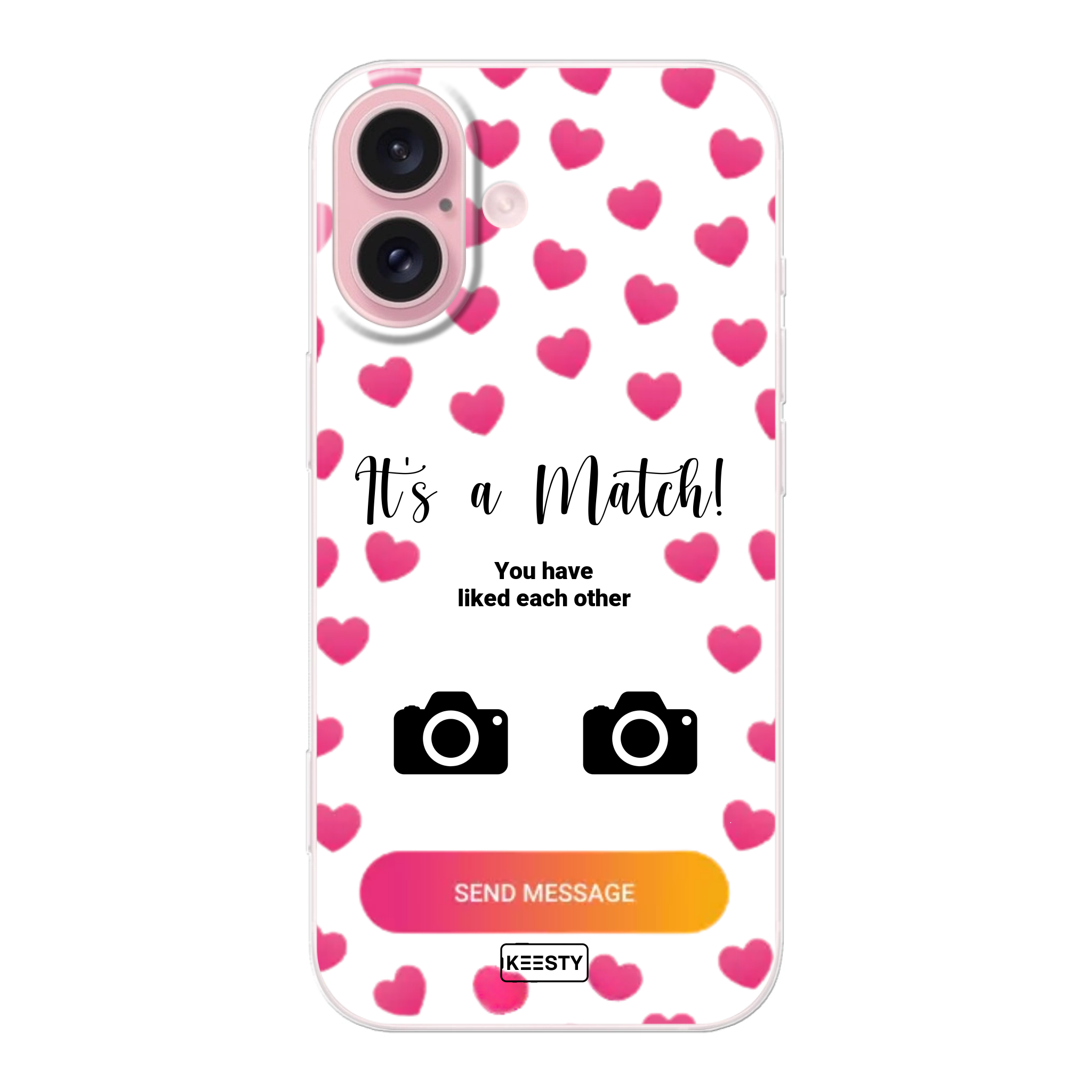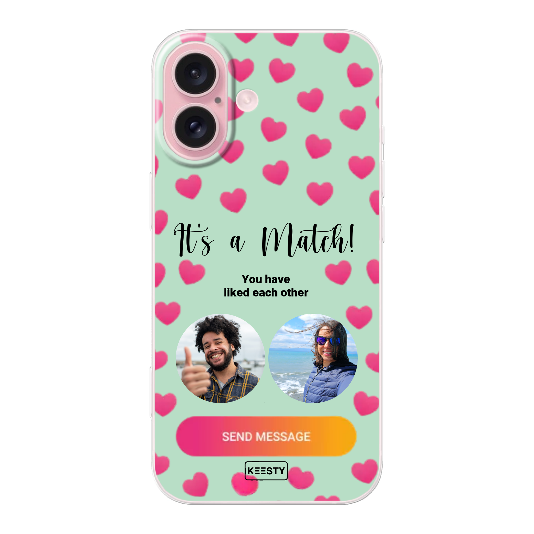 Telefoonhoesje maken met jullie mooiste momenten met het unieke It’s a Match telefoonhoesje. Upload eenvoudig twee foto’s; van jou en je partner, beste vriend(in) of zelfs je huisdier en creëer een stijlvol en persoonlijk ontwerp. De achtergrond bestaat uit speelse hartjes op een transparante basis, verkrijgbaar in meerdere kleuren, zodat jouw hoesje altijd perfect aansluit bij je stijl.
