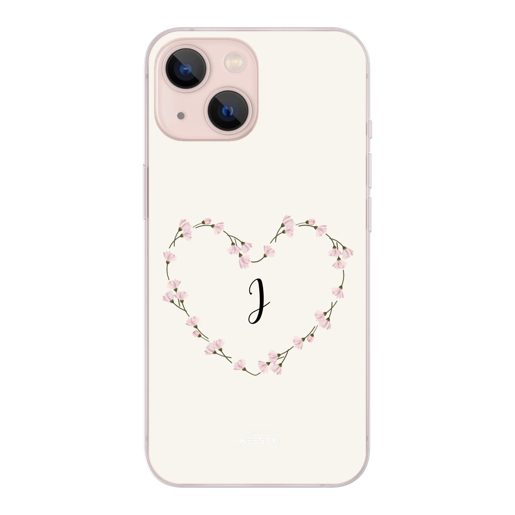 Geef je telefoon een persoonlijke en romantische touch met dit stijlvolle softcase telefoonhoesje in beige, voorzien van een prachtig bloemen hartje. In het hartje kun je eenvoudig je eigen tekst toevoegen, zoals een naam, datum of korte quote – helemaal in jouw stijl.