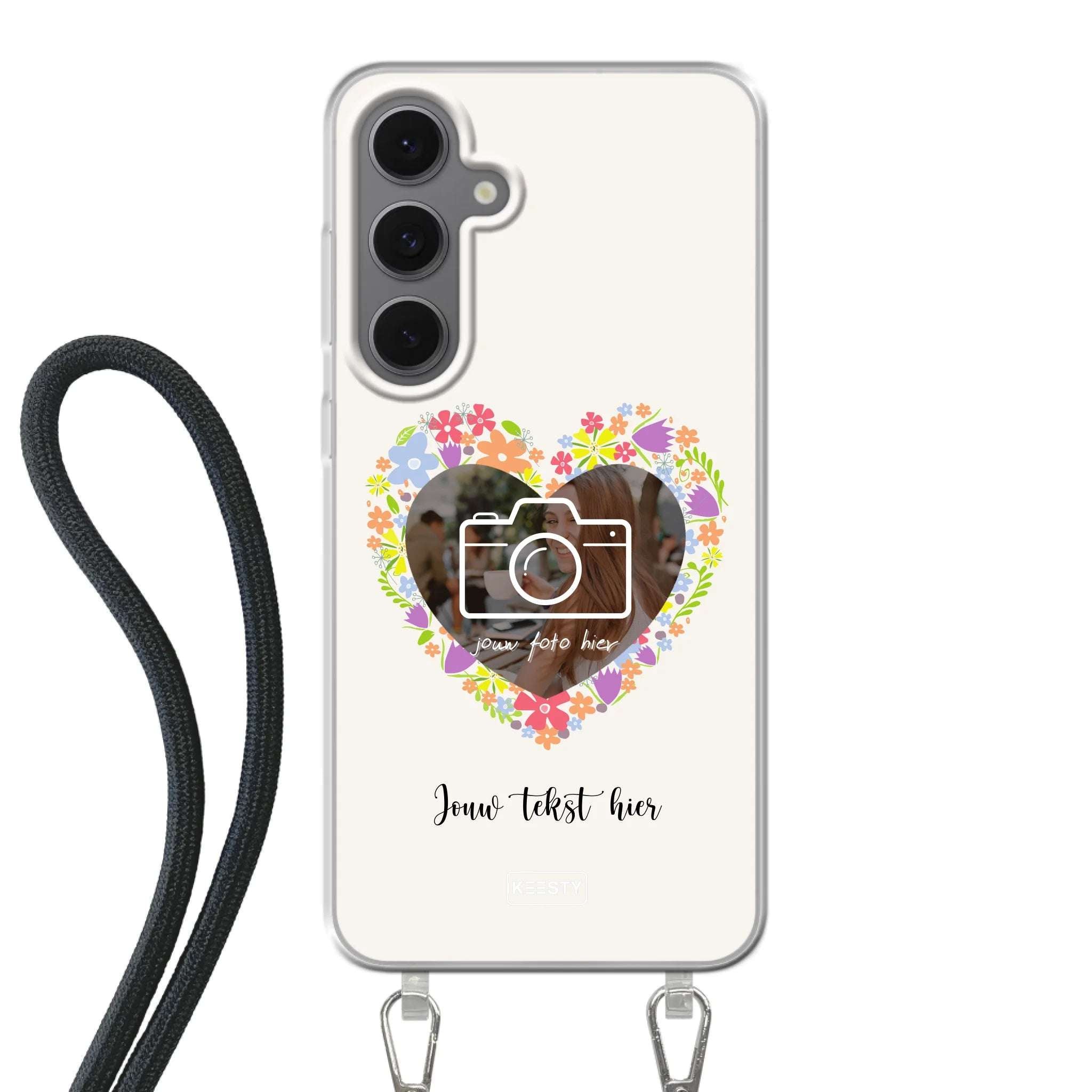 Telefoonhoesje Ontwerpen – Transparant Softcase met Bloemen Hart, Eigen Foto en Afneembare Koord